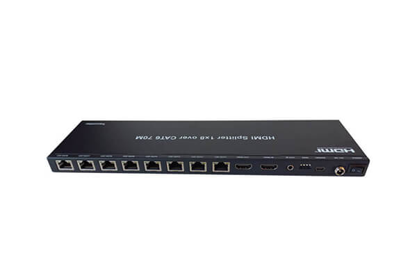 اسپلیتر اکستندر 8 پورت HDMI ، یک راه مقرون به صرفه و آسان برای انتقال تصاویر HDMI با وضوح بالا از یک منبع تصویری به 8 نقطه دیگر در فاصله 40 تا 70 متری می باشد. این مدل علاوه بر عمل تکرارکننده (اسپلیتر) تا ۸ مکان، عمل افزایش فاصله انتقال تصویر HDMI تا مسافت 40 متر در رزولوشن 4K30Hz و مسافت 70 متر در رزولوشن 1080P@60Hz را دارد.